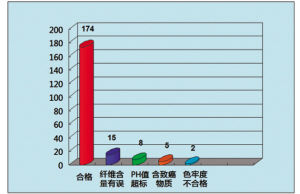 在抽查過程中,檢出26種產(chǎn)品的部分項(xiàng)目不達(dá)標(biāo),占抽查產(chǎn)品總數(shù)的13%,主要不合格項(xiàng)目是纖維成分及含量明顯不符,pH值、可分解致癌芳香胺染料和耐濕摩擦色牢度超標(biāo)。