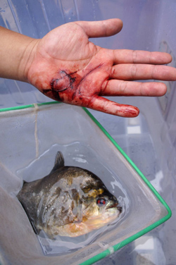 一條食人魚把柳州市民的左手咬傷。卿要林