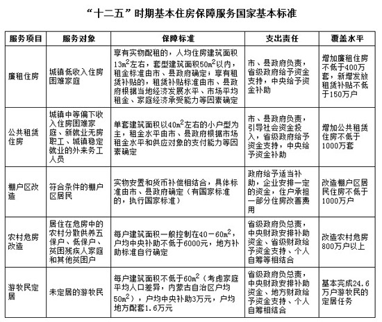 中新網(wǎng)房產(chǎn)頻道從國務院今日發(fā)布的《國家基本公共服務體系“十二五”規(guī)劃》中了解到,“十二五”期間,國家將建立基本住房保障制度,維護公民居住權(quán)利,逐步滿足城鄉(xiāng)居民基本住房需求,實現(xiàn)住有所居。