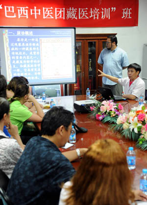 7月21日,北京藏醫(yī)院“巴西中醫(yī)團(tuán)藏醫(yī)培訓(xùn)”班在京舉辦,來自巴西的26名學(xué)員在北京藏醫(yī)院領(lǐng)到藏醫(yī)培訓(xùn)證書。