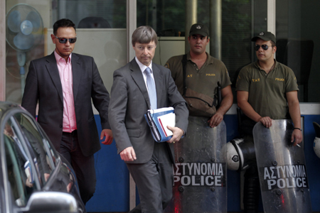 在國際貨幣基金組織、歐盟和歐洲央行“三駕馬車”的施壓下,希臘領(lǐng)導(dǎo)人同意了絕大部分緊縮措施,以完成115億歐元緊縮目標(biāo)。 圖為30日歐盟委員會的談判代表馬提亞·莫爾斯(左二)離開希臘財政部。