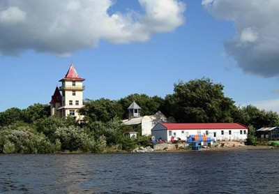 乘船在黑龍江中看主航道中國一側(cè)鶴崗蘿北名山島的景色。