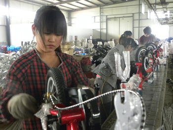 廣宗縣一家童車(chē)公司忙碌的生產(chǎn)線。記者 曹?chē)?guó)廠