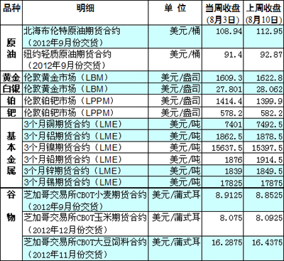 黃金市場方面,近幾周一直在1600美元上下震蕩。由于中國7月份進(jìn)出口增速放緩,加劇市場投資者對(duì)新一輪量化寬松貨幣政策的預(yù)期,紐約黃金期貨合約價(jià)格10日繼續(xù)上行,小幅收高。