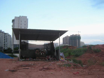 翡翠園小區(qū)是南寧市核心主干道民族大道沿路上一個較早建起的樓盤。小區(qū)業(yè)主反映,從2004年開始沿大門口進(jìn)入小區(qū),必經(jīng)之路就是一個露天的垃圾站,小區(qū)生活垃圾就這樣曝曬在生活區(qū)中。今年4月中旬,大門口這片露天垃圾中轉(zhuǎn)站轉(zhuǎn)移到了小區(qū)二期!
