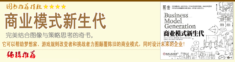 這本書不僅對打算創(chuàng)業(yè)的人士有幫助,而且對企業(yè)的管理者也有借鑒意義。書中提到的商業(yè)模式的9個(gè)方面淺顯易懂,具備可操作性。 |