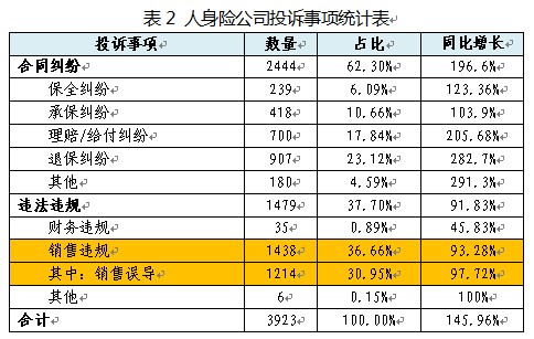 (二)人身險(xiǎn)公司的投訴事項(xiàng)類型