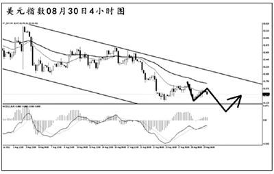 從圖上看,美元指數(shù)短線再度爆發(fā)出下行動(dòng)能,整體仍然在4小時(shí)圖的下降通道中部運(yùn)行,均線系統(tǒng)壓制排列。但美元指數(shù)仍然未能跌破日線圖道氏低點(diǎn)81.15的支撐,中線的漲勢(shì)仍在延續(xù)。短線的主次節(jié)奏向下,預(yù)計(jì)美元指數(shù)調(diào)整過后繼續(xù)下行的概率較大,并且有望直接跌破道氏低點(diǎn),展開更深層次的下調(diào)。