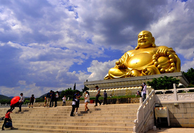 錦屏山風(fēng)景區(qū)坐落在彌勒縣城北風(fēng)景如畫的錦屏山上,位于昆河公路沿線,距彌勒縣城僅10公里,距省會昆明130公里,距石林風(fēng)景區(qū)40公里。彌勒素有南滇福地之稱,彌勒因寺而名重,寺因彌勒而名傳。錦屏山雖不高,但山形獨(dú)特,鐘靈毓秀,氣勢磅礴,粗看像一道巨大的屏風(fēng),呵護(hù)著美麗富饒的峨山甸水;細(xì)看則像一尊景白天成的彌勒佛,結(jié)迦趺坐,護(hù)佑眾生。