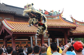 第二屆中國非物質(zhì)文化遺產(chǎn)博覽會(huì)9月6日-10日在棗莊臺(tái)兒莊古城隆重舉行。圖為精彩的舞獅表演。(王德慶/攝) |