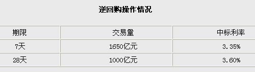 央行網(wǎng)站9日發(fā)出公告指出,中國(guó)人民銀行于本周二(10月9日)以利率招標(biāo)方式開(kāi)展了逆回購(gòu)操作。逆回購(gòu)總規(guī)模達(dá)到2650億元。其中,7天期逆回購(gòu)1650億元,中標(biāo)利率為3.35%;28天期逆回購(gòu)1000億元,中標(biāo)利率3.60%。