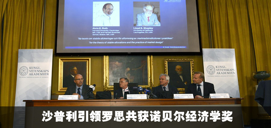 瑞典皇家科學(xué)院常任秘書諾爾馬克當(dāng)天中午13時(shí)(北京時(shí)間19時(shí))在皇家科學(xué)院會議廳用瑞典語和英語宣讀了獲獎(jiǎng)?wù)呙麊。他說,羅思和沙普利因在匹配穩(wěn)定理論和市場設(shè)計(jì)實(shí)踐方面的研究貢獻(xiàn)而獲獎(jiǎng)。