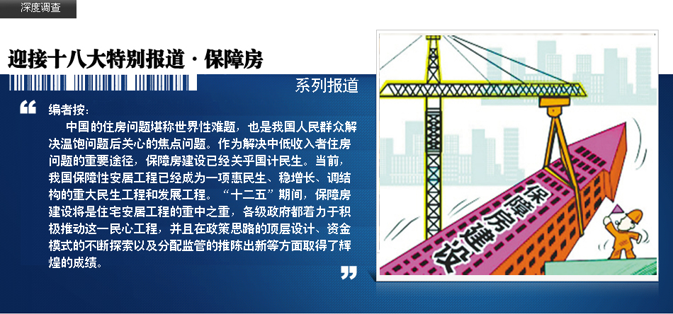 | 保障性安居工程建設(shè)一頭連著民生,一頭連著發(fā)展。自2008年底,我國實施大規(guī)模保障性安居工程建設(shè)以來,不僅讓2600多萬戶城鎮(zhèn)家庭住上了新房,近1億人口的住房條件得到改善,而且在拉動投資、改善內(nèi)需和管理通脹預(yù)期等方面,凸顯出巨大的正面效應(yīng)。 | |