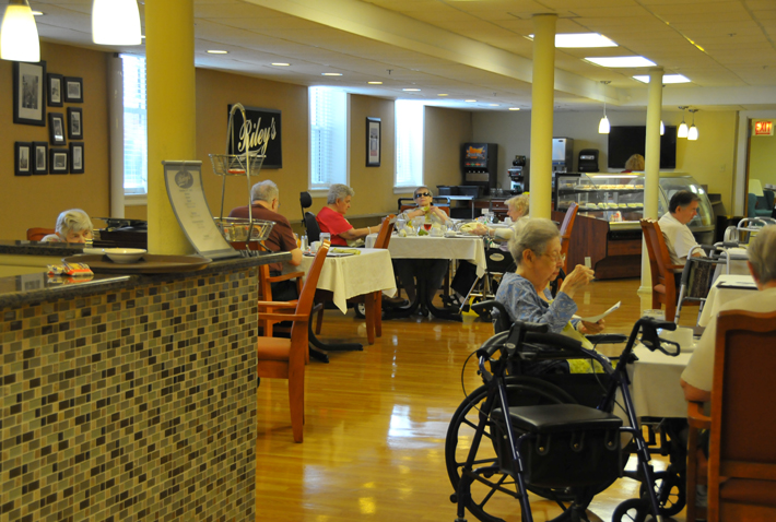 芝加哥市諾伍德養(yǎng)老院餐廳內(nèi)老人在就餐。 記者 張保平/攝 |