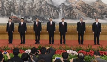 人民大會(huì)堂東大廳鮮花盛開,暖意融融,氣氛莊重而熱烈。500多名中外記者早早來到這里等候,準(zhǔn)備爭(zhēng)搶在第一時(shí)間報(bào)道新一屆中共最高領(lǐng)導(dǎo)層的首次集體公開亮相。