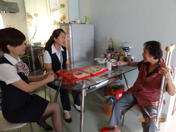 在珠海市著名文學(xué)創(chuàng)作家葉昌的遺孀、獨(dú)居老人韓秀坤家中,新華保險理賠關(guān)懷公益志愿服務(wù)會的志愿者與老人促膝談心 |