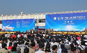 圖為第九屆中國(guó)航空航天博覽會(huì)開(kāi)幕式現(xiàn)場(chǎng)。本屆博覽會(huì)有114架飛行器集結(jié)。 |