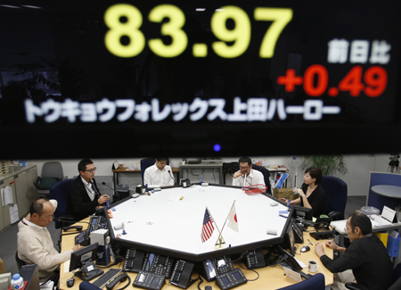 因市場預(yù)期重新上臺執(zhí)政的日本自由民主黨將促使日本央行采取更為激進的寬松貨幣政策,17日,東京外匯市場上日元對美元的匯價跌至1年半以來最低水平,一度降到84.48日元比1美元。