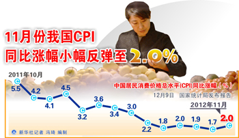 從2011年8月開始的物價(jià)漲幅回落,很可能已于今年10月觸底,11月CPI重上2%,標(biāo)志著新一輪上漲階段的到來。國務(wù)院國資委研究中心研究員胡遲表示,盡管11月CPI的同比增幅只比10月擴(kuò)大了0.3個(gè)百分點(diǎn),但這標(biāo)志著本輪物價(jià)的拐點(diǎn)已經(jīng)出現(xiàn),未來我國物價(jià)水平將進(jìn)入新一輪上升周期。