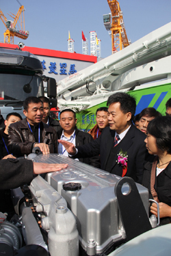 華菱星馬董事長劉漢如自信地為嘉賓介紹華菱自產(chǎn)重型發(fā)動機 |