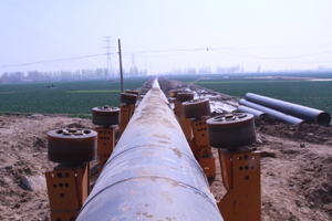 大遼河穿越的鉆機(jī)場地和出土點(diǎn)都為水稻田。施工準(zhǔn)備階段,正值水稻成熟時,田地積水多,場地十分泥濘,設(shè)備根本無法進(jìn)入現(xiàn)場正常施工。為保障設(shè)備安全進(jìn)場組裝,同時不影響其他稻田灌溉,項(xiàng)目部果斷決定在場地周邊開挖排水溝,同時在整個場地底層鋪放了五層草簾,草簾上方又鋪設(shè)了一層道板,在設(shè)備反復(fù)行走的地方加鋪了鋼板。這種加鋪方法,將對耕地的占用和破壞程度降到了最低,充分保障了當(dāng)?shù)卮迕竦睦娌皇苡绊憽?BR> 10月8日,大遼河穿越工程正式打孔開鉆。同時,工程進(jìn)入管線預(yù)制階段。受到場地限制,管線焊接所處位置均為水稻田,水深達(dá)0.2m,淤泥較深,設(shè)備難以進(jìn)場,采用常規(guī)的管線焊接作業(yè)幾乎不可能,工程進(jìn)展緩慢。眼看這種情形,賈偉波看在眼里,急在心上。項(xiàng)目部經(jīng)認(rèn)真勘察研究地形地貌,最終制訂了拖管焊接法,即征用一段旱田進(jìn)行焊接作業(yè),焊接一道焊口后用4臺挖掘機(jī)向出土點(diǎn)方向拖拽,3臺挖掘機(jī)在尾端推動,管子移動后再在原焊接口處進(jìn)行下一道口的焊接。該方法使得管線預(yù)制工作在冬季來臨之前順利完成,為整個施工的順利進(jìn)行打下了基礎(chǔ)。