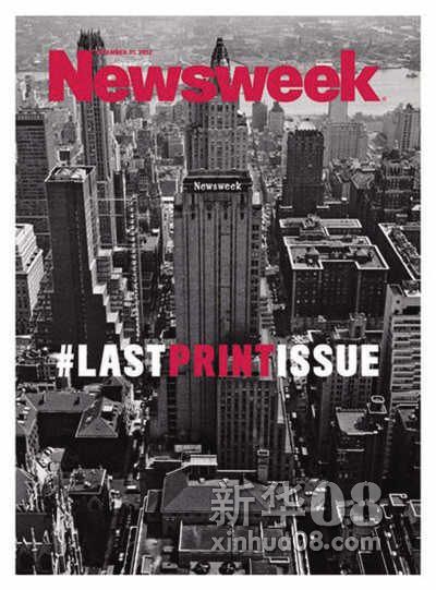 美國(guó)知名雜志《新聞周刊》最后一期印刷版將于12月31日在各報(bào)刊亭正式銷(xiāo)售。當(dāng)?shù)貢r(shí)間12月23日,該雜志網(wǎng)站發(fā)布了最后一期印刷版封面——一張?jiān)撾s志位于美國(guó)紐約市辦公大樓的黑白照片,照片上方為該刊發(fā)行日期(2012年12月31日),中下部則配以“最后一期印刷版”的字樣,充滿了離愁別緒。而在“最后一期印刷版”字樣的前面使用了“#”字標(biāo)簽。這不僅意味著《新聞周刊》以詩(shī)化的方式向社交媒體致意,且表明社交媒體是導(dǎo)致該雜志紙質(zhì)刊物走到盡頭的原因之一。