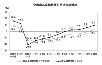 26日,上海易居房地產(chǎn)研究院發(fā)布的研究報告顯示,11月份30個典型城市商品住宅成交面積為2125萬平方米,同比增長84.1%,持續(xù)9個月同比上升。同時,商品住宅成交量在11月達到年內(nèi)最高點。