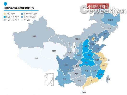《2012年中國財(cái)富報(bào)告》稱北京、上海、江蘇、廣州、浙江為中國富人密度最高省市,這5省市富人總量占全國40%以上。