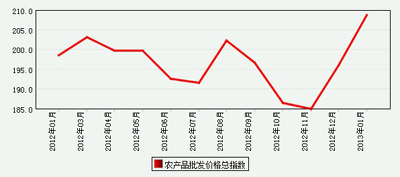 | 2012年以來農(nóng)產(chǎn)品批發(fā)價格總指數(shù)月度走勢圖 |