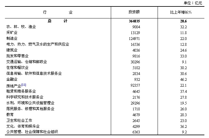 在固定資產投資(不含農戶)中,第一產業(yè)投資9004億元,比上年增長32.2%;第二產業(yè)投資158672億元,增長20.2%;第三產業(yè)投資197159億元,增長20.6%。