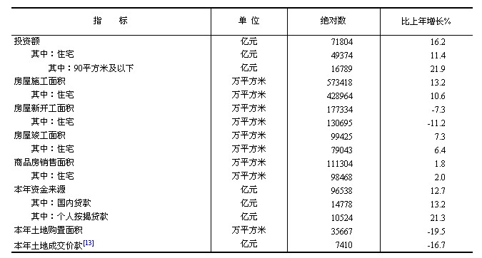 全年房地產開發(fā)投資71804億元,比上年增長16.2%。其中,住宅投資49374億元,增長11.4%;辦公樓投資3367億元,增長31.6%;商業(yè)營業(yè)用房投資9312億元,增長25.4%。