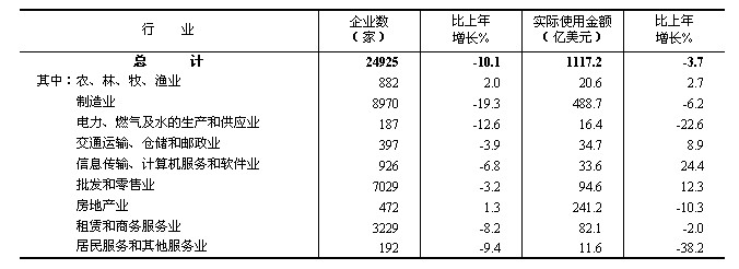 全年非金融領域新批外商直接投資企業(yè)24925家,比上年下降10.1%。實際使用外商直接投資金額1117億美元,下降3.7%。