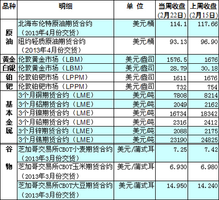 國際大宗商品期貨價格明細(xì)表[2013-02-25]