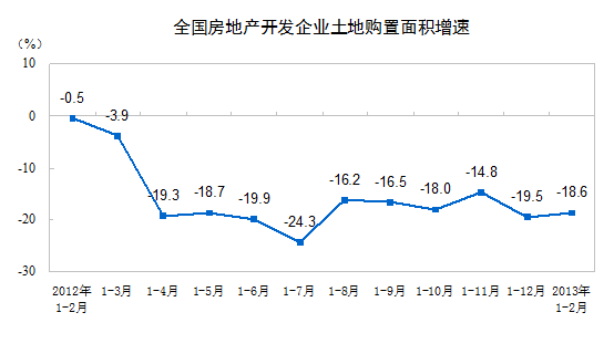 1-2月份,房地產(chǎn)開發(fā)企業(yè)土地購置面積3813萬平方米,同比下降18.6%,降幅比去年全年縮小0.9個(gè)百分點(diǎn);土地成交價(jià)款919億元,下降12.0%,降幅縮小4.7個(gè)百分點(diǎn)。