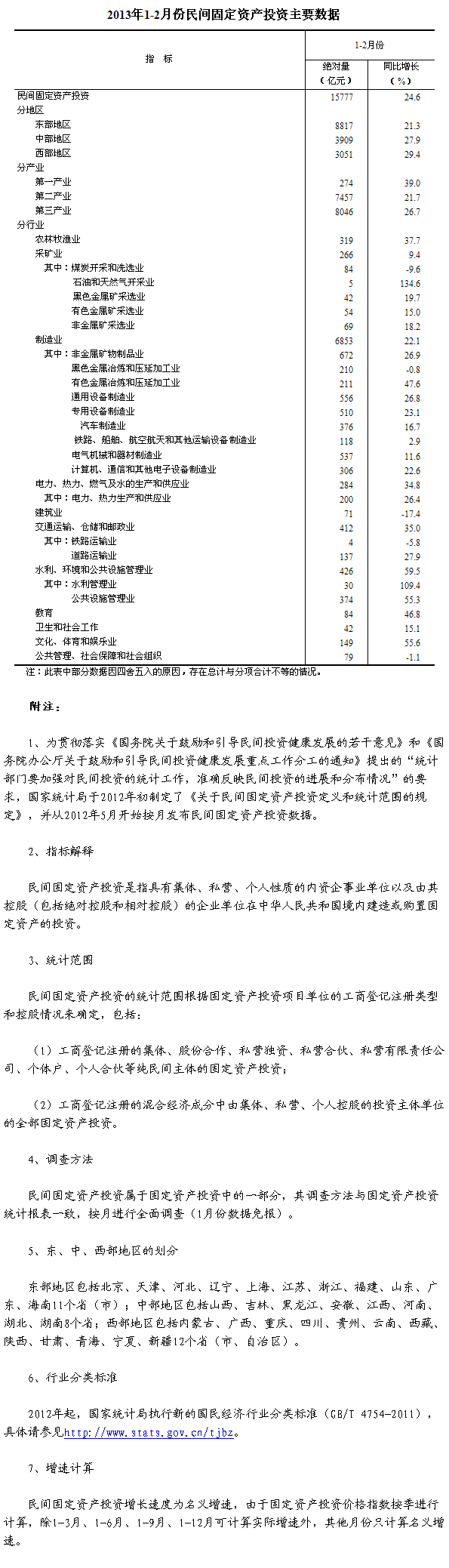 2013年1-2月份,全國民間固定資產(chǎn)投資15777億元,同比名義增長24.6%,增速比去年全年回落0.2個百分點(diǎn)。民間固定資產(chǎn)投資占固定資產(chǎn)投資的比重為61.4%,與去年全年持平。