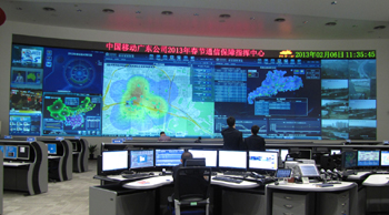 IMAX”模式,屏幕長21米高5米,信息量大,呈現(xiàn)立體;二是可實時呈現(xiàn)熱點區(qū)域業(yè)務、人流、網絡和業(yè)務質量分布;三是可實時分析并呈現(xiàn)微博、微信、飛信等熱點業(yè)務使用情況;四是可每5分鐘自動刷新數(shù)據(jù),確保及時性;五是有效運用信令、話單、撥測等多種采集手段,信息挖掘更全面。實現(xiàn)精確統(tǒng)計移動互聯(lián)網流量,分析用戶關注的重點業(yè)務。