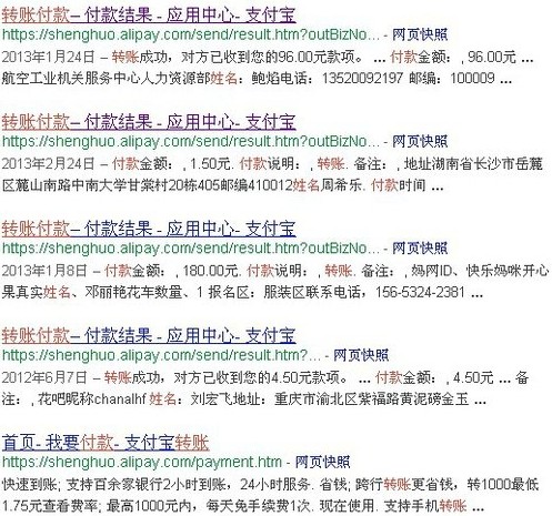 事實上,直接搜索“site:shenghuo.alipay.com”就能搜到轉(zhuǎn)賬信息,數(shù)量超過2000條。記者隨即致電支付寶24小時客服熱線95188反映情況,按照記者提供的方法搜索,的確發(fā)現(xiàn)這一嚴重安全漏洞,客服人員表示,此前并不知道谷歌中能夠搜索到轉(zhuǎn)賬信息,稱將記錄并向公司反映情況。