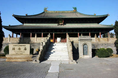 北岳廟規(guī)模宏大,古建成群。按廟內現存明嘉靖二十六年刻《北岳廟圖》所載,北岳廟占地面積為173982平方米,南北軸線長達500余米。現僅存中間部分,占地面積8萬平方米,主要建筑呈“田”字形,坐北朝南排列在一條垂直的中軸線上。主體建筑德寧之殿,占地2009.8平方米,通高25.6米,氣勢磅礴,是五岳祭祀建筑中規(guī)格最高的建筑,也是我國現存元代最大的木結構建筑。