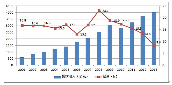 圖1:2001-2013年間1-2月餐飲業(yè)情況對比