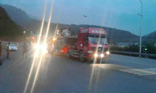 4月20日晚,裝載重型機(jī)械的救援車(chē)隊(duì)從雅西高速滎經(jīng)出口往蘆山縣。