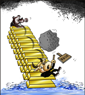甚至有專家猜測,金價暴跌的背后主使人有可能是美聯(lián)儲,因其希望通過打壓金價來維護(hù)美元世界貨幣的低位。宋鴻兵分析認(rèn)為,美國經(jīng)濟(jì)的復(fù)蘇主要是資產(chǎn)價格的復(fù)蘇,很大程度上須依賴超低利率的寬松政策。而黃金大幅上漲會使全球投資者對通脹預(yù)期發(fā)生變化,從而對利率市場的估值產(chǎn)生誤判,進(jìn)而影響美國的股市和債市,對資產(chǎn)價格的上揚就會產(chǎn)生極大的壓制作用,甚至?xí)拐麄資產(chǎn)價格的復(fù)蘇出現(xiàn)夭折!敖饍r上漲,對美經(jīng)濟(jì)以及資產(chǎn)價格復(fù)蘇會產(chǎn)生沉重打擊,這就是美不喜歡看到金價上漲的主要原因!