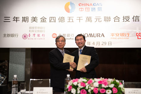 家銀行于臺(tái)北市舉行銀行團(tuán)聯(lián)合授信簽約儀式,簽訂了額度4.5億美元三年期的聯(lián)合授信協(xié)定,以用於集團(tuán)大陸地區(qū)的燃?xì)忭?xiàng)目發(fā)展。