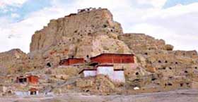 置身孜珠寺千年古剎,請用心靈感應本土宗教的靈魂翱翔于孜珠山的嶙峋巨石之間的美妙。孜珠山山勢奇特,山峰狀如泉華石筍,主峰上果然有一處自然形成的門,目光穿過洞開之門,可見遠方藍天。孜珠寺的僧房錯落鑲嵌其間,顯得神圣而雅致。