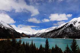 然烏湖北面有著名的來古冰川,冰川延伸到湖邊。每當冰雪融化時,雪水便注入湖中。雪皚皚的雪峰,景色如詩如畫。狹長的湖泊蜿蜒十余里后逐漸收縮成一道河谷,河道中許多巖石和小島點綴其間,四季美景都會使人如臨夢幻之境。