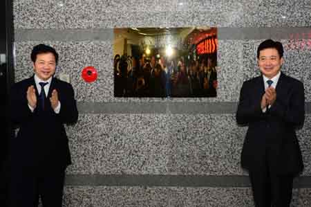 5月8日,山東省委常委、青島市委書記李群(右)和新華社黨組成員、副總編輯慎海雄共同為中國(青島)海洋經(jīng)濟指數(shù)研究院揭牌。 當日,由新華通訊社、山東省政府、青島市政府三方合作成立的新華(青島)國際海洋資訊中心在青島正式啟動運營。該中心旨在通過發(fā)布海洋經(jīng)濟發(fā)展系列指數(shù)等服務(wù),打造中國海洋經(jīng)濟的“風向標”。