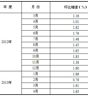 根據(jù)季節(jié)調(diào)整模型自動修正程序,對2012年3月份以來的固定資產(chǎn)投資(不含農(nóng)戶)環(huán)比增速進(jìn)行修訂。修訂結(jié)果及2013年4月份環(huán)比數(shù)據(jù)如下: