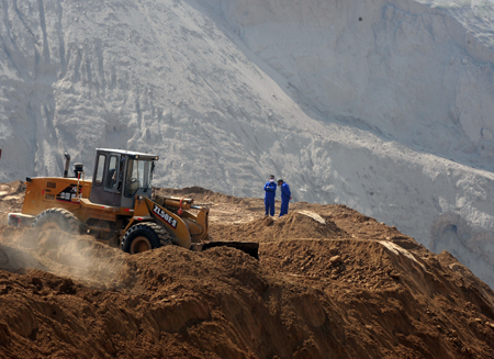 2012年10月,太平洋建設(shè)集團(tuán)與蘭州市政府簽約,投資200多億元,啟動蘭州黃河北岸25平方公里移山造地工程,打造“蘭州新城”。按照遠(yuǎn)期規(guī)劃,蘭州市擬在黃河北岸移山造地160平方公里,進(jìn)行城市建設(shè),這塊區(qū)域可容納200萬人口,相當(dāng)于目前城區(qū)總?cè)丝诘?/3。圖為施工機(jī)械在荒山上移山造地。