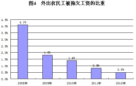 外出受雇農(nóng)民工,被雇主或單位拖欠工資的占0.5%,比上年下降了0.3個百分點。建筑業(yè)農(nóng)民工被拖欠工資的占1.5%,比上年下降0.4個百分點。從近幾年調(diào)查數(shù)據(jù)看,被雇主或單位拖欠工資的農(nóng)民工比例逐年下降,解決和遏制農(nóng)民工工資拖欠的一系列政策措施,取得明顯成效。