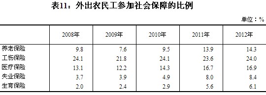 (三)外出農(nóng)民工參加社會保險的水平有所提高,但總體仍然較低