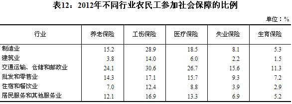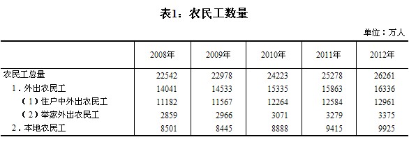 2012年全國農(nóng)民工監(jiān)測調(diào)查報告